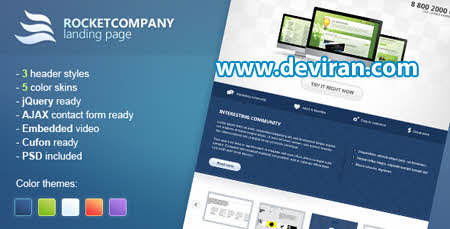 Rocketcompany یکی از زیباترین قالب های طراحی شده توسط Themeforets می باشد که در ۵ رنگ زیبا منتشر شده است . این قالب در رنگ های آبی سبز سفید بنفش و نارنجی می تواند زیبایی خاصی به سایت شما ببخشد .